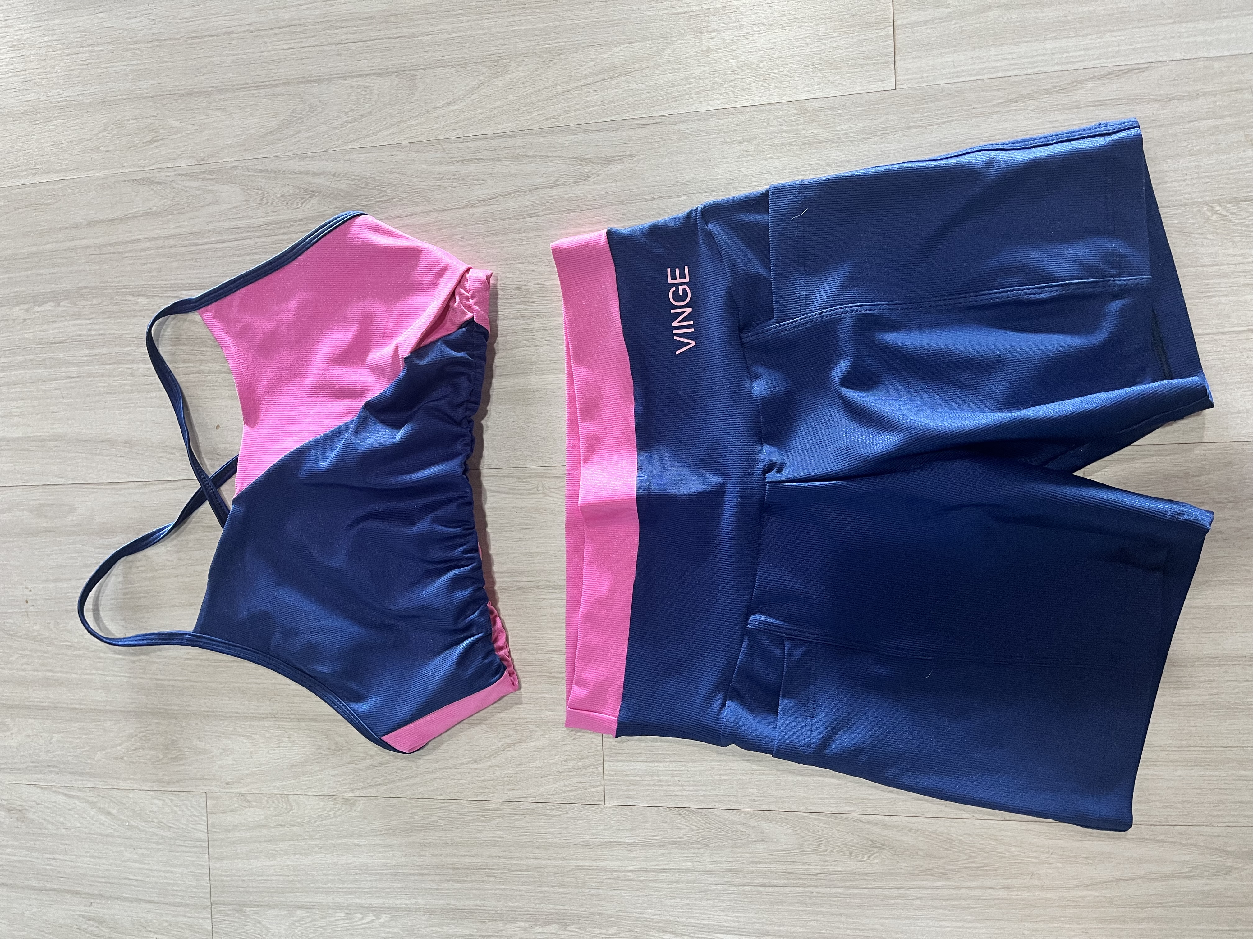 VINGE CONJUNTO SHORT + TOP ROSA E AZUL