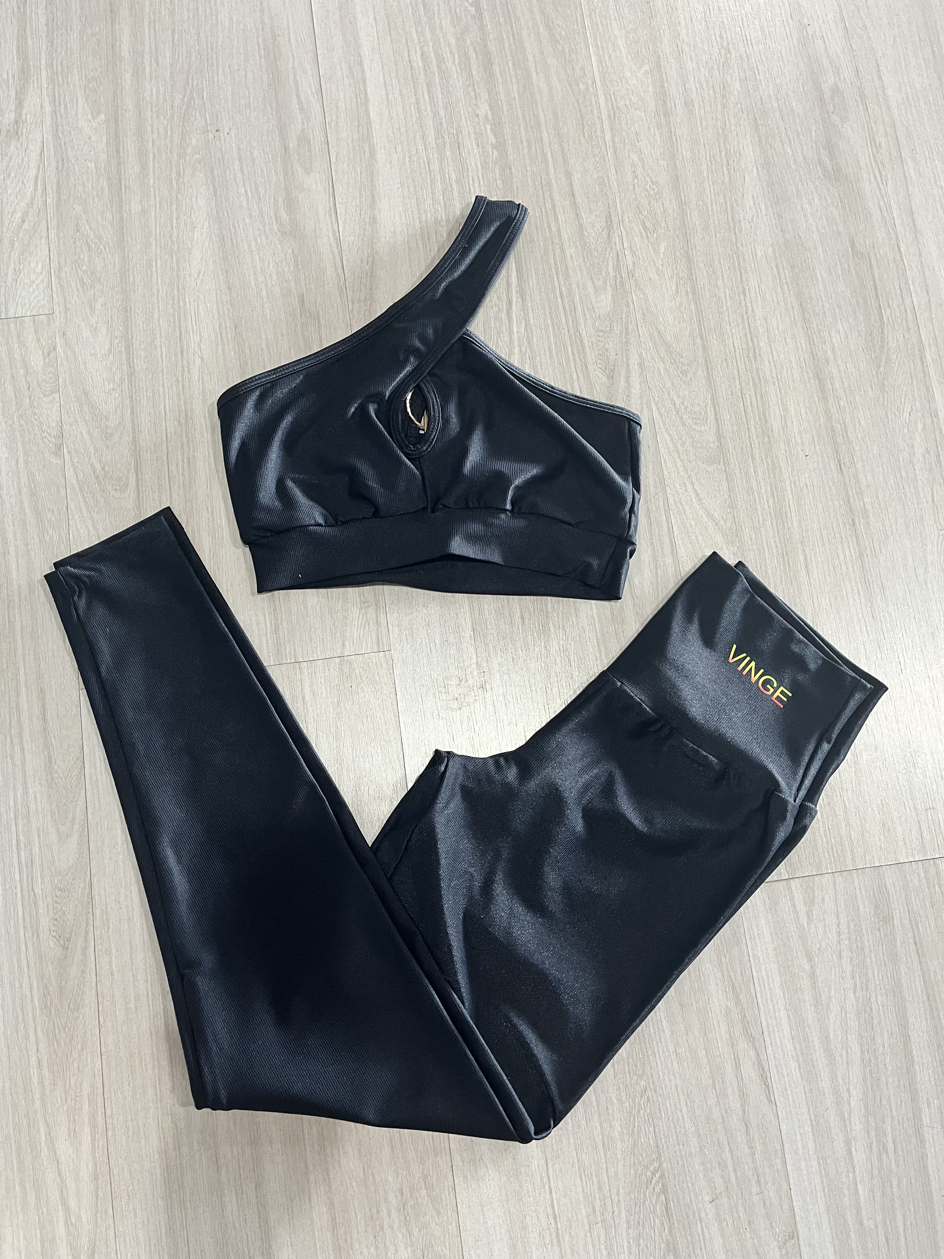 VINGE CONJUNTO LEGGING + TOP PRETO COLORIDO