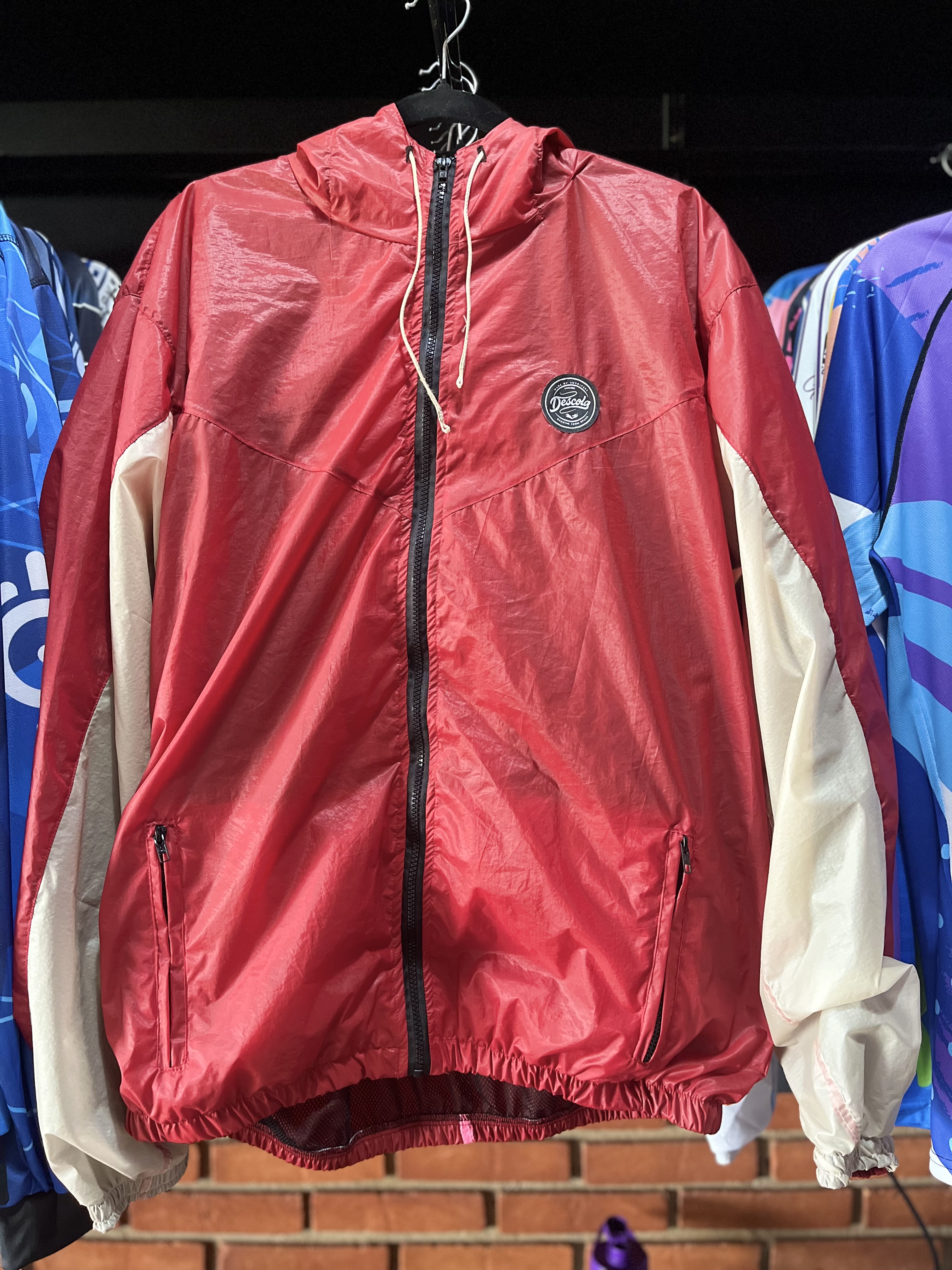 JAQUETA DE VELAME DESCOLA VERMELHO E BRANCO