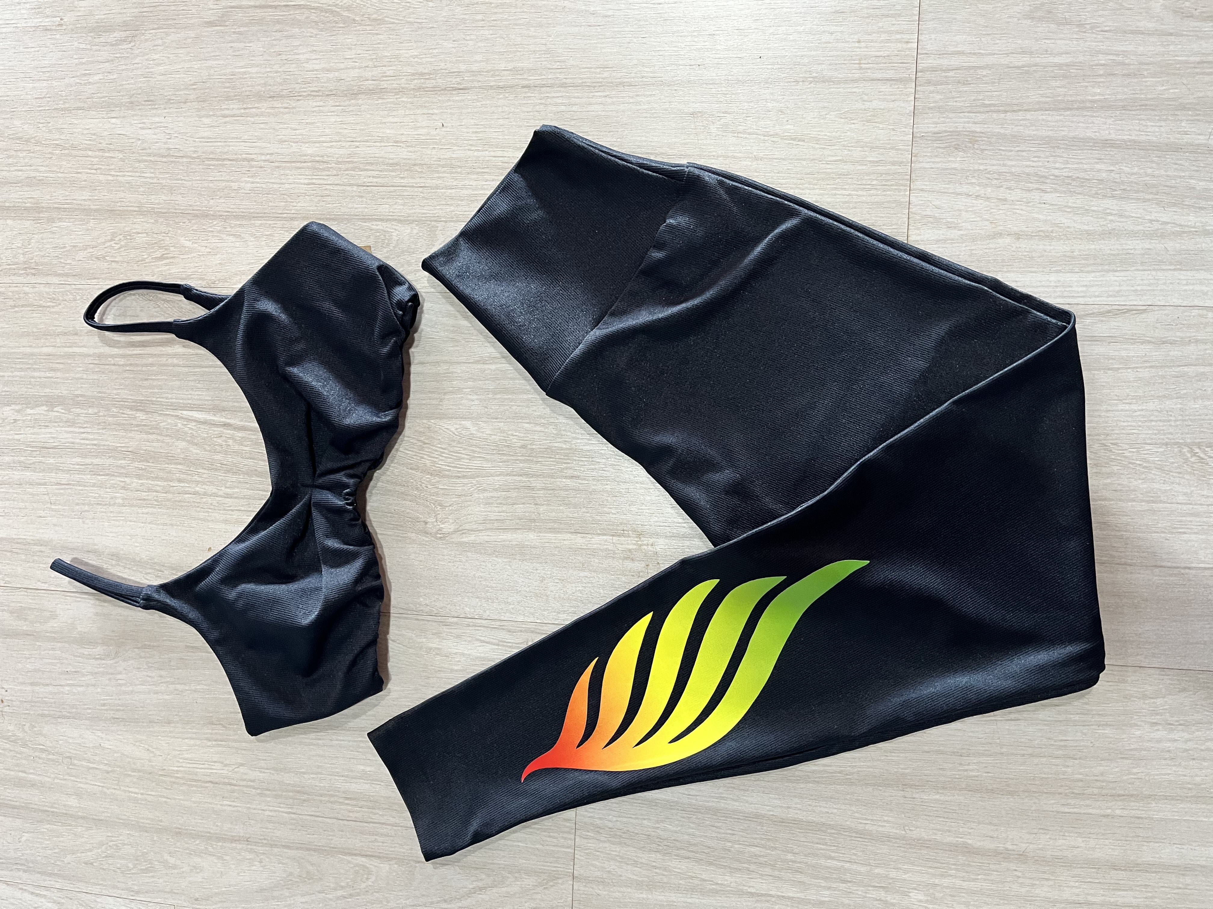 VINGE CONJUNTO LEGGING + TOP PRETO COLORIDO