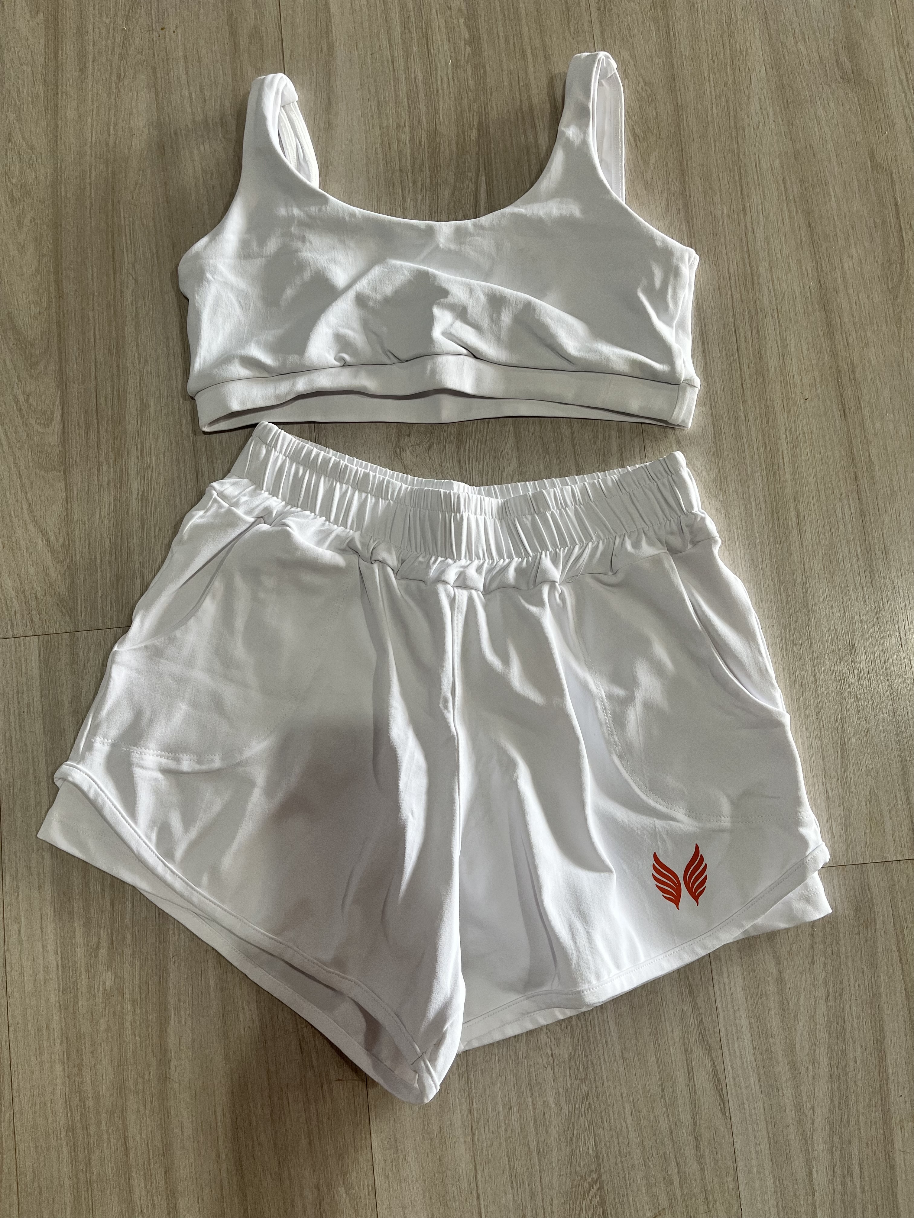 VINGE CONJUNTO SHORT + TOP BRANCO E LARANJA