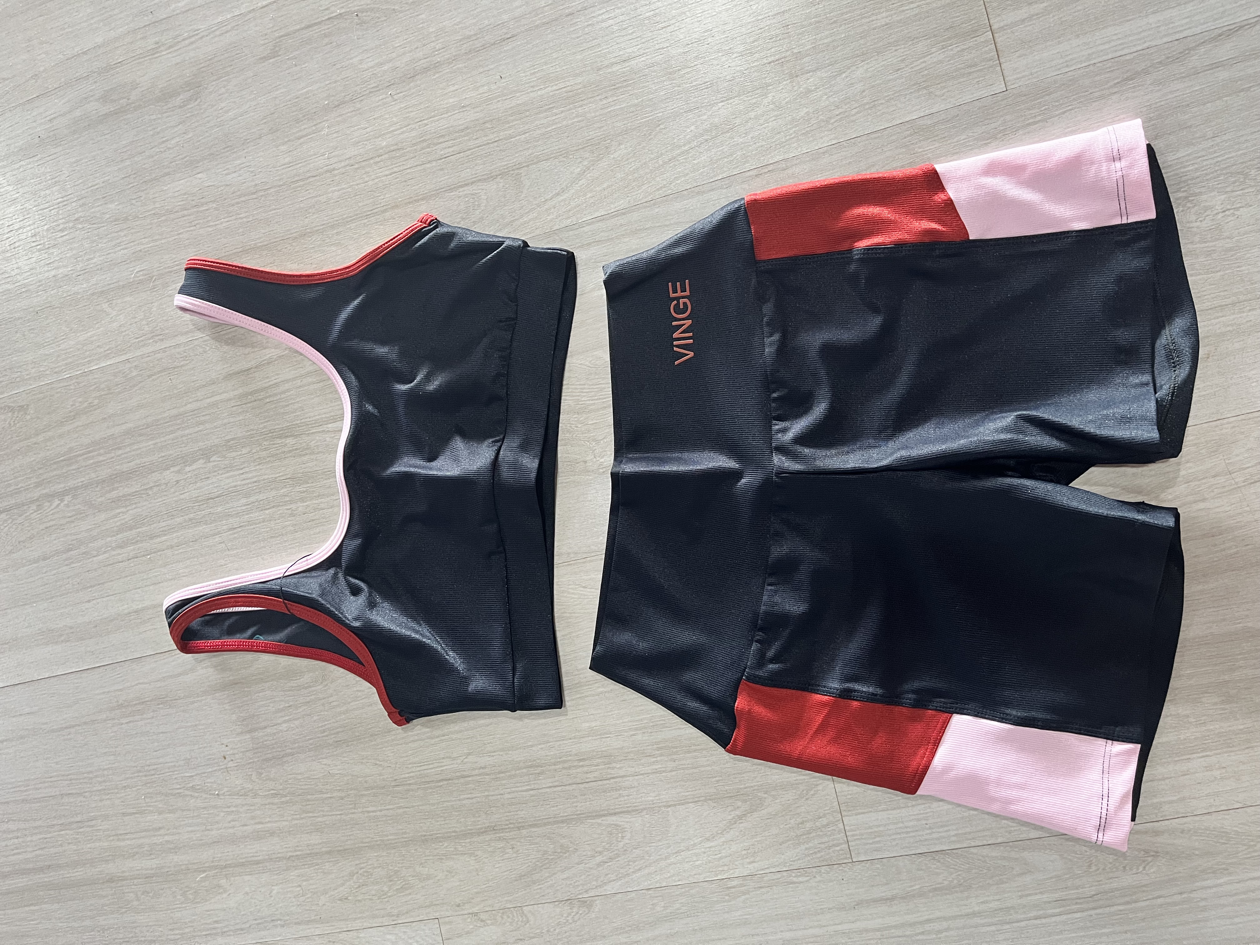 VINGE CONJUNTO SHORT + TOP PRETO VERMELHO E ROSA